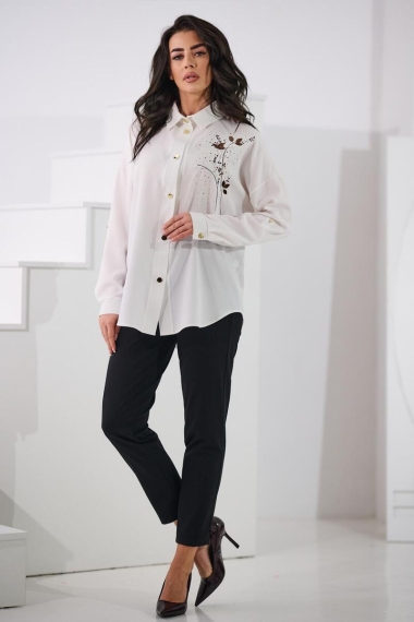 Zakończone są eleganckim mankietem zapinanym na mały guzik, dzięki czemu bluzka prezentuje się schludnie i stylowo – idealna zarówno do stylizacji biznesowych, jak i bardziej eleganckich.
