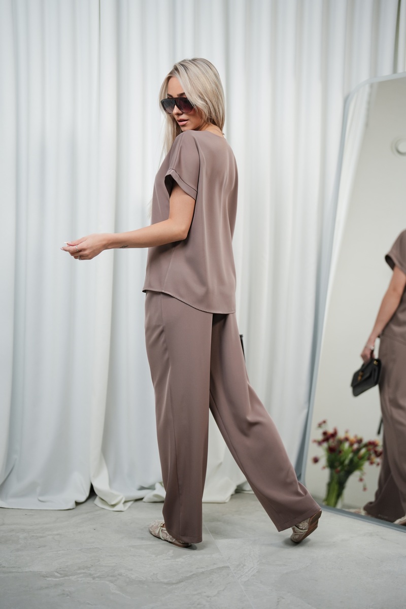 Minimalistyczny design, dopracowany krój i pięknie układający się materiał sprawiają, że zestaw prezentuje się niezwykle stylowo i nowocześnie. To doskonała propozycja zarówno na co dzień, do pracy, na spotkania, jak i na wyjścia.