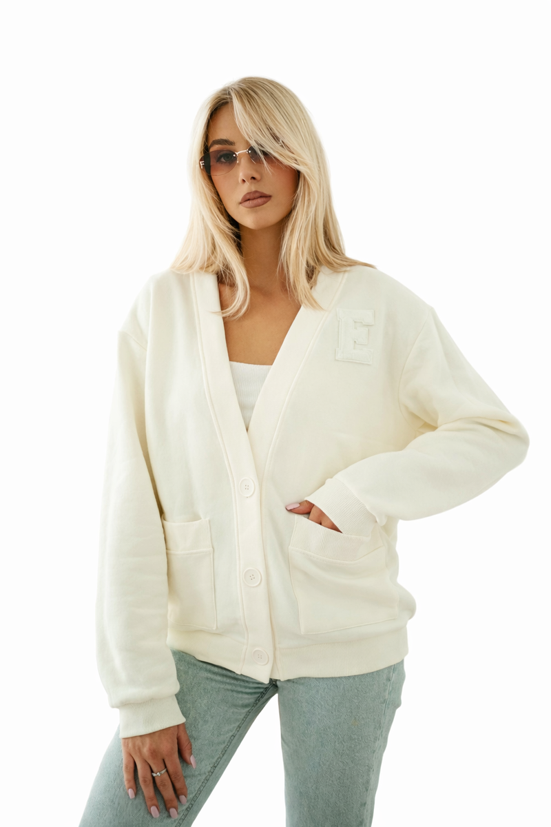 Rękawy, kieszenie oraz dół bluzy wykończone są ściągaczem, co nadaje całości sportowo-casualowego charakteru i zapewnia wygodne dopasowanie. Minimalistyczny design przełamuje subtelny detal – haft chenille w formie litery „E” umieszczony na piersi.