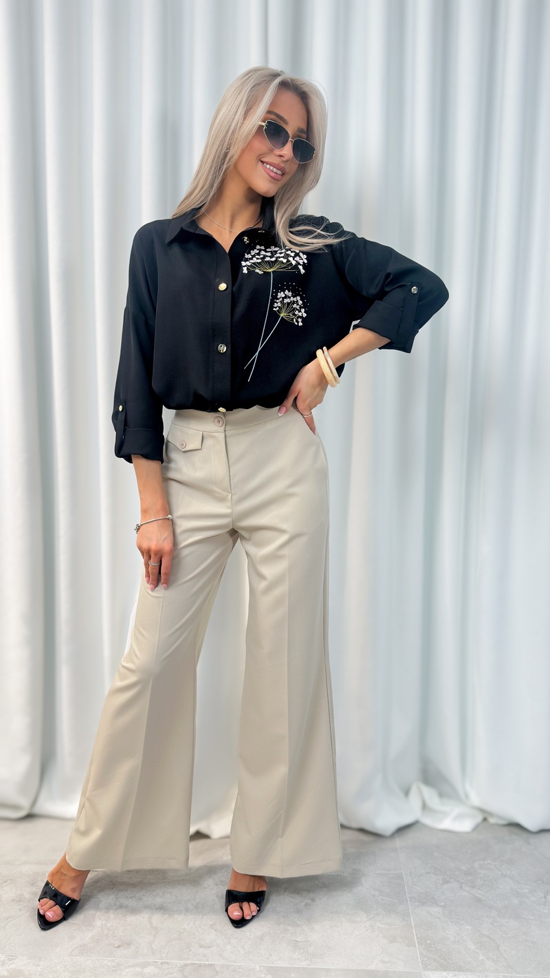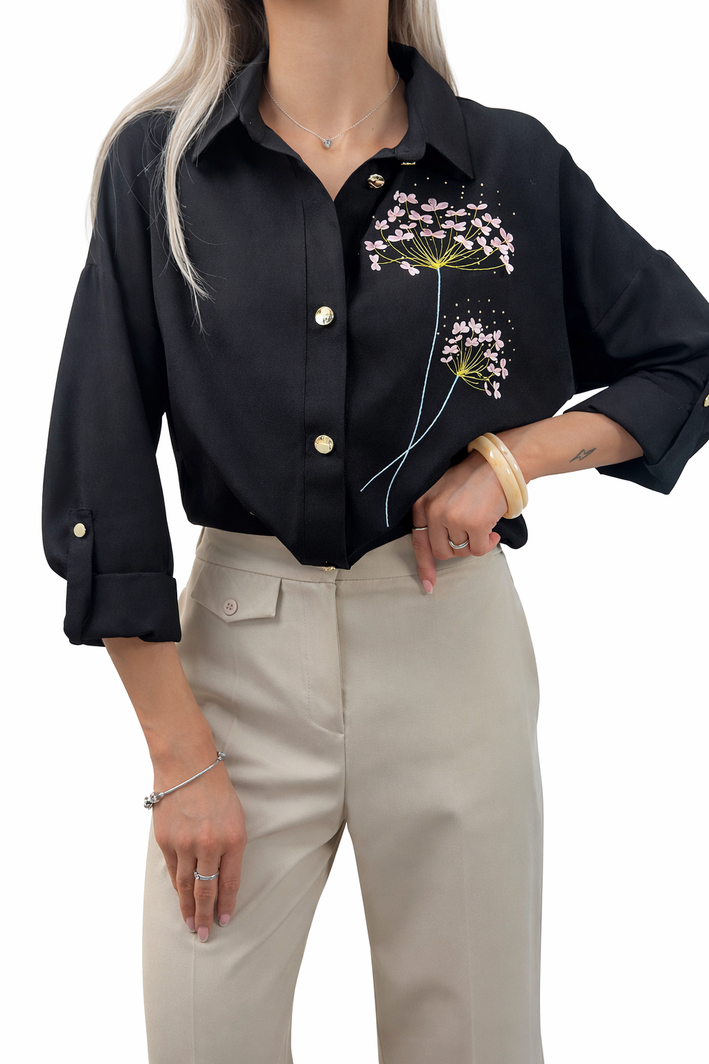Stylowa koszula damska z haftem kwiatowym to idealne połączenie klasyki i modnego detalu. Subtelny haft w pastelowych kolorach nadaje koszuli wyjątkowego charakteru, dzięki czemu świetnie sprawdzi się zarówno w stylizacjach eleganckich, jak i codziennych.