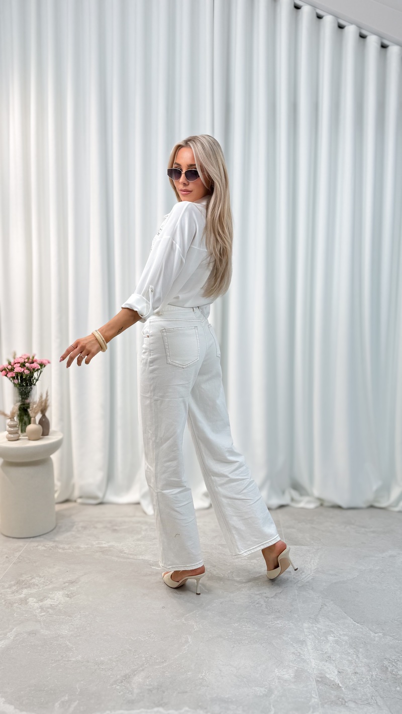 Stylowa i ponadczasowa koszula damska w kolorze ecru, która łączy elegancję z wygodą noszenia. Wykonana z lekkiego, przyjemnego w dotyku materiału, doskonale układa się na sylwetce i zapewnia komfort przez cały dzień.