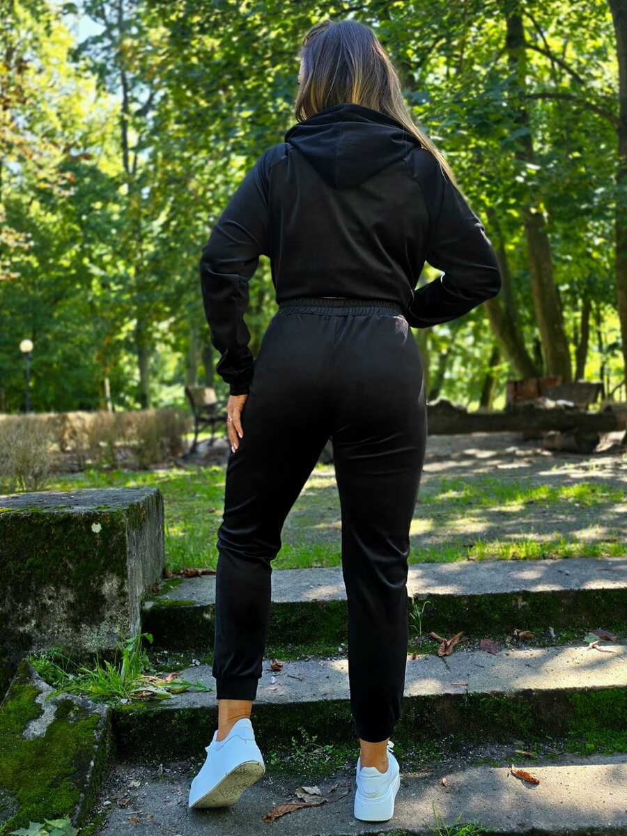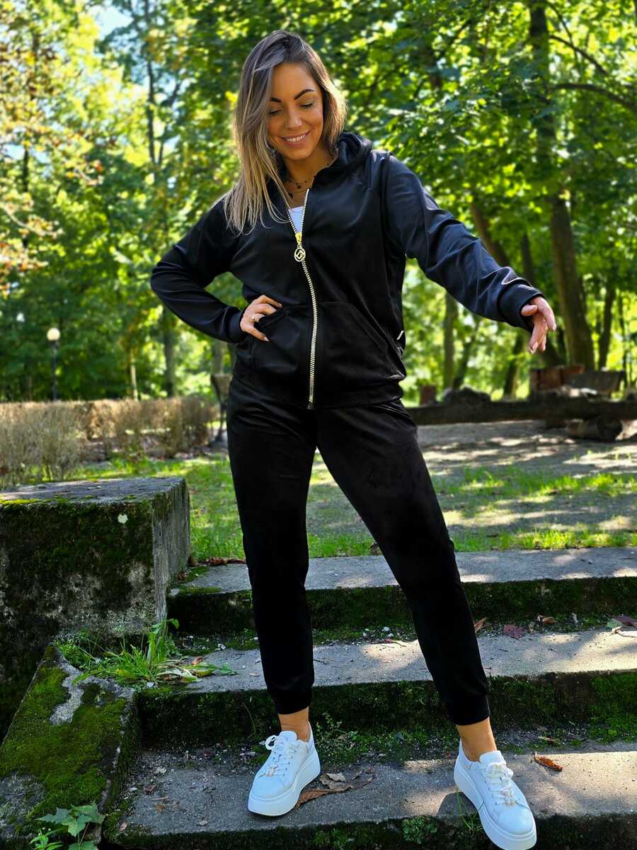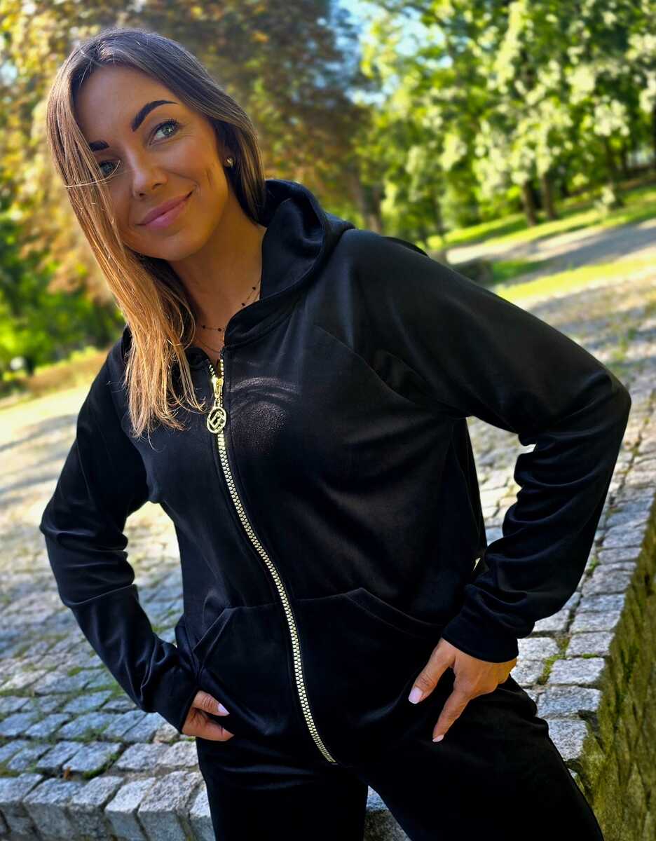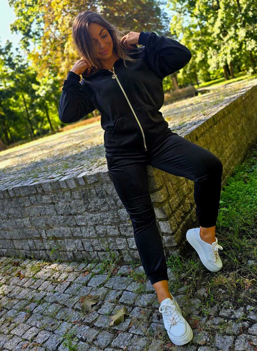 Postaw na wygodę i styl! Nasz czarny welurowy komplet dresowy to idealne połączenie sportowej swobody i eleganckiego looku.