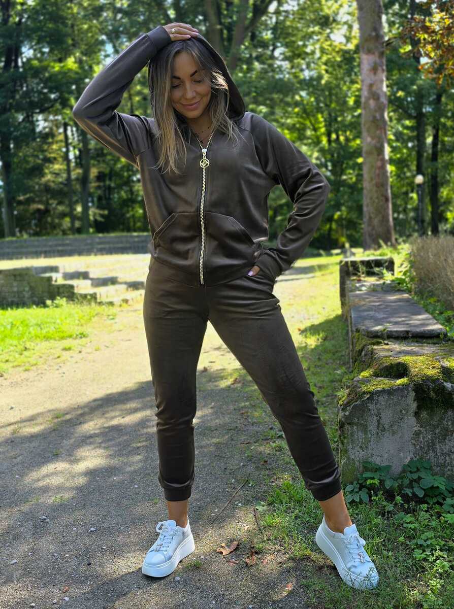 Postaw na wygodę i styl! Nasz czarny welurowy komplet dresowy to idealne połączenie sportowej swobody i eleganckiego looku.